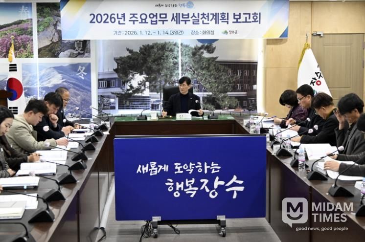 미담타임스 정인화 기자 | 장수군은 지난 12일부터 오는 14일까지 3일간 군청 회의실에서 ‘2026년 업무계획 보고회’를 열고 올해 군정의 주요 역점 사업과 핵심 과제를 공유한다고 밝혔다.