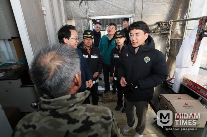 이날 김진태 지사는 겨울철 폭설로 인한 주거용 비닐하우스 붕괴 위험 여부를 점검하고, 거주지 내 난방기기와 소화기 작동상태 등 화재 예방을 위한 안전 점검을 실시했다.