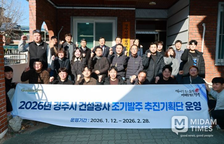 미담타임스 김준완 기자 | 경주시가 지역 건설경기 활성화와 사회기반시설의 조속한 확충을 위해 ‘2026년 건설사업 조기발주 추진기획단’을 운영하며, 상반기 전체 건설공사의 70% 이상 발주를 목표로 행정력을 집중하고 있다.