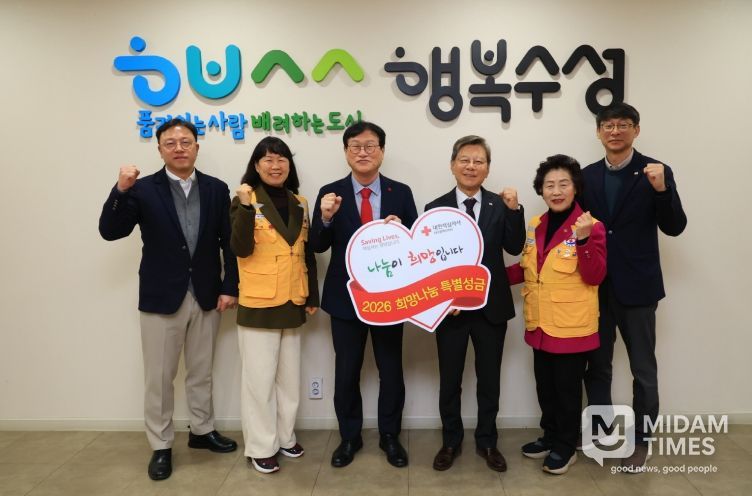 김대권 수성구청장은 “모두가 희망과 따뜻함을 나누는 한 해가 되길 바란다”며 “취약계층을 위해 사랑을 실천하고 있는 대한적십자사의 노고에 깊이 감사드리며, 도움이 필요한 이웃에게 온정이 전해질 수 있도록 적십자회비 모금에 적극 동참해 주시길 바란다”고 말했다.
