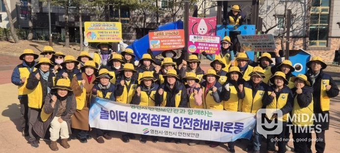 미담타임스 김준완 기자 | 영천시 안전보안관 단체는 14일 중앙동에 위치한 문내·외 제1공원에서 ‘안전한바퀴 캠페인’의 일환으로 놀이터 안전점검 활동을 실시했다.
