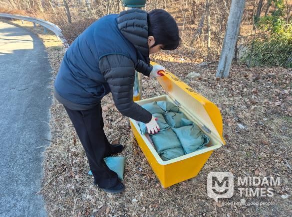 토함산자연휴양림 임직원들은 휴양림 내 산책로, 차량 진입로의 결빙과 폭설에 대비하여 염화칼슘 40포대와 모래 50포를 비축하고, 경사로, 교차로 등 위험구역에는 제설함을 신규 설치하여, 제설작업에 효율성을 더했다.