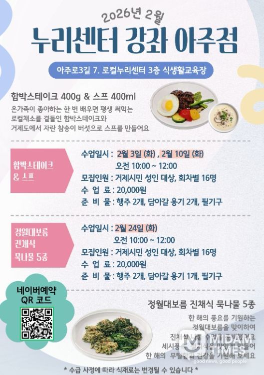 교육은 거제로컬 누리센터 고현점과 아주점에서 각각 운영되며, 참여 신청은 매월 전월 15일부터 거제로컬 누리센터 고현점 네이버 스마트플레이스를 통한 예약으로 진행된다.
