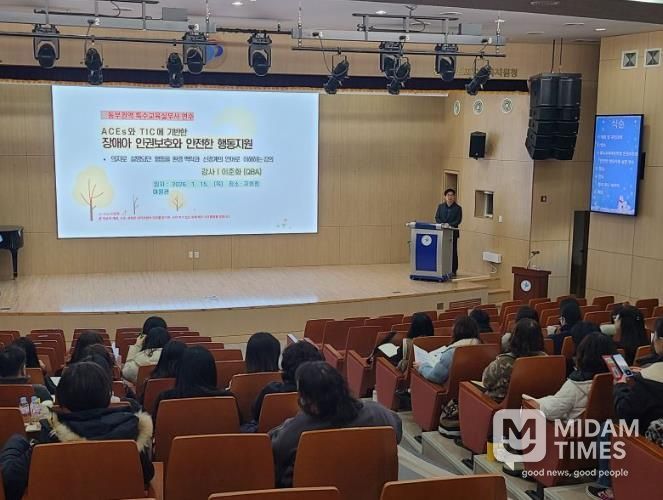 미담타임스 김준완 기자 | 경상북도포항교육지원은 2026년 1월 15일 포항교육지원청 여울관에서 2025학년도 경북동부권역 특수교육지원인력(특수교육실무사) 역량 강화 연수를 실시했다.