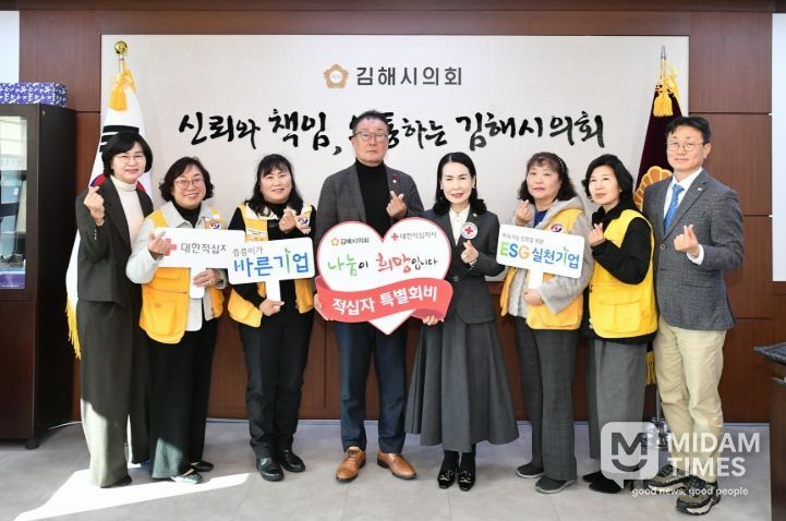 미담타임스 공한별 기자 | 김해시의회는 지난 16일 시의회 의장실에서 대한적십자사 경남지사에 2026년도 적십자 특별회비를 전달하며 어려운 이웃을 위한 따뜻한 나눔에 동참했다.