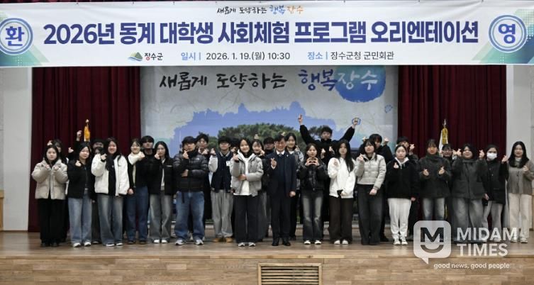 미담타임스 정인화 기자 | 장수군은 19일 군청 군민회관에서 2026년 동계 대학생 사회체험 프로그램 ‘오리엔테이션’을 진행하고 3주 간의 행정체험 프로그램을 공식 시작했다고 밝혔다.