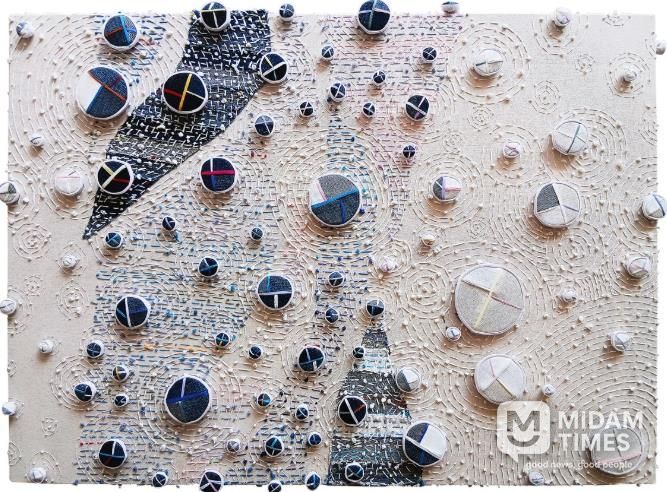 올해 첫 전시인 이번 초대전에서는 ‘시간을 잇는 선’을 주제로 청바지의 천을 활용한 평면 조형 작품 20여 점을 전시한다.