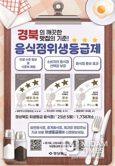 미담타임스 김준완 기자 | 영주시보건소(소장 김문수)는 시민이 안심하고 외식할 수 있는 환경을 조성하기 위해 음식점 위생등급제 참여 업소를 연중 상시 모집하며, 위생 관리 수준 향상에 힘쓰고 있다.