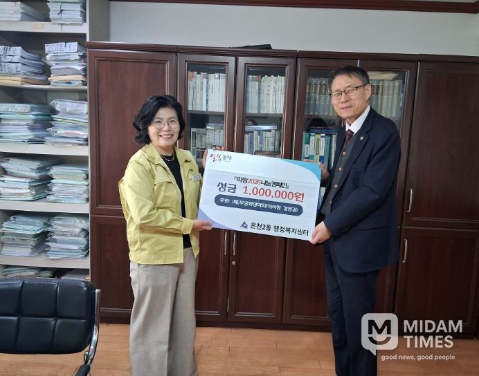 미담타임스 김교환 기자 | 부산 동래구 온천2동 행정복지센터는 지난 16일 (재)무궁화장학회로부터 복지 사각지대 이웃을 위한 성금 100만 원을 기탁받았다고 밝혔다.
