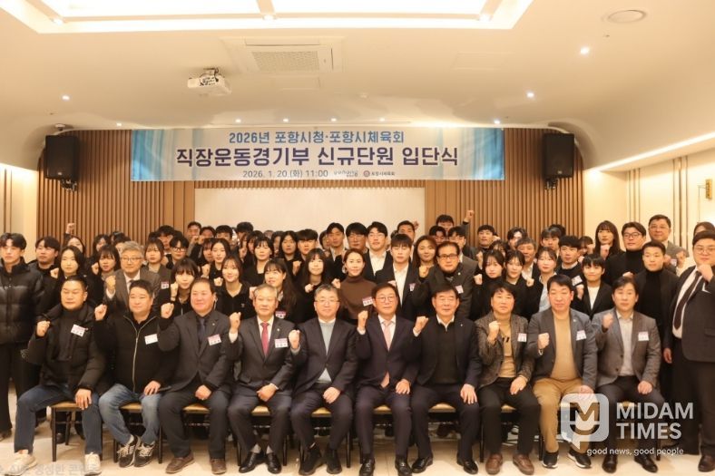 미담타임스 김준완 기자 | 포항시와 포항시체육회는 20일 라메르웨딩에서 ‘2026년 포항시 직장운동경기부 입단식’을 개최했다.