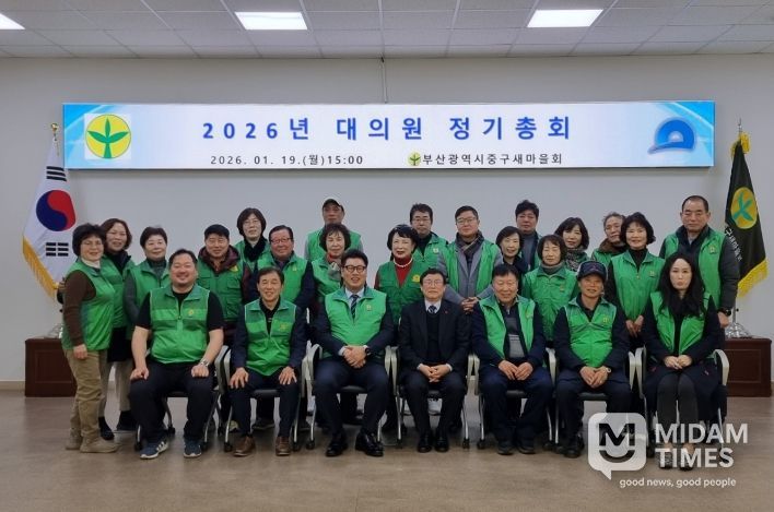 미담타임스 김교환 기자 | 부산광역시중구새마을회(회장 이형목)는 지난 19일 중구청 중회의실에서 대의원 및 이사 등 30여명이 참석한 가운데‘2026년 중구새마을회 대의원 정기 총회’를 개최했다.