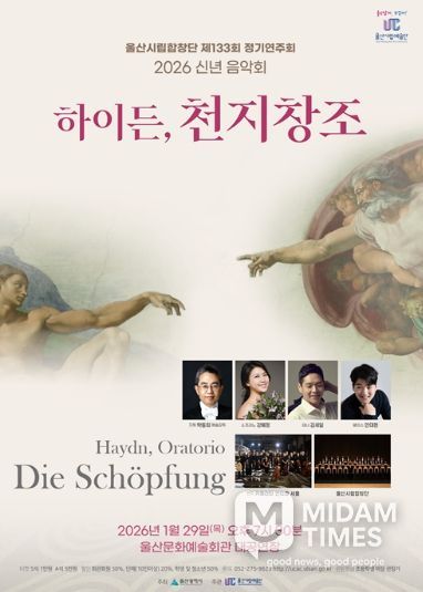 미담타임스 김준완 기자 | 울산시립합창단은 오는 1월 29일 오후 7시 30분 울산문화예술회관 대공연장에서 신년음악회로 제133회 정기연주회인 하이든의 ‘천지창조(The Creation)’를 선보인다.