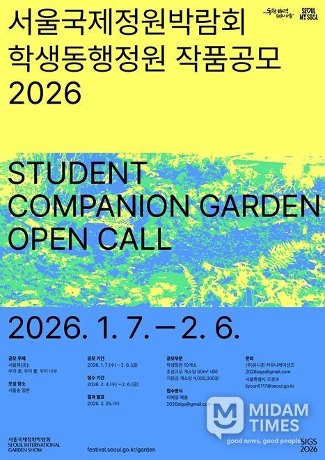 서울시는 창의적인 정원 디자인 발굴과 정원문화 확산을 위해 7일부터 2월 6일까지 '2026 서울국제정원박람회' 학생동행정원 및 시민동행정원 작품공모를 진행한다고 밝혔다.