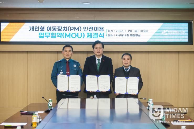 미담타임스 정주환 기자 | 인천 서구는 지난 20일 구민의 안전한 개인형 이동장치(PM) 이용환경 조성을 위해 인천서부경찰서, 인천광역시 서부교육지원청과 함께 ‘개인형 이동장치(PM) 안전 이용을 위한 업무협약’을 체결했다.