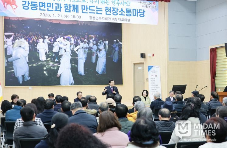 미담타임스 김준완 기자 | 경주시가 21일 지역 주민과 직접 소통하는 ‘2026년 시민과 함께 만드는 현장소통한마당’을 시작하고, 안강읍과 강동면을 차례로 찾아 새해 첫 읍면동 현장 행보에 나섰다.