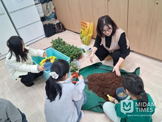 이어 식물을 화분에 심는 반려 식물 체험활동으로 자연과 가까워지는 즐거움을 느꼈다.