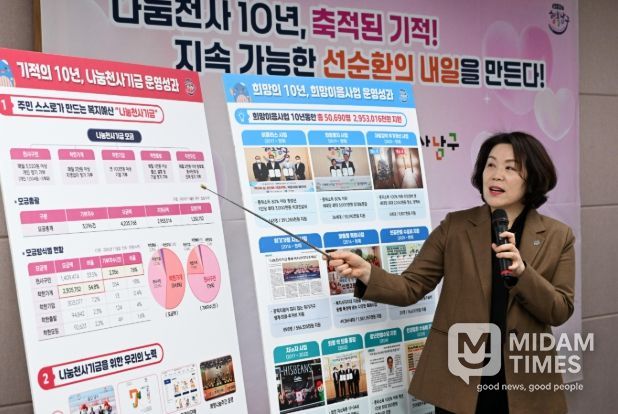 이날 남구는 나눔천사기금 희망이음사업 10년의 축적된 기적을 바탕으로 지속가능한 선순환의 내일을 위한 미래비전을 공개했다.