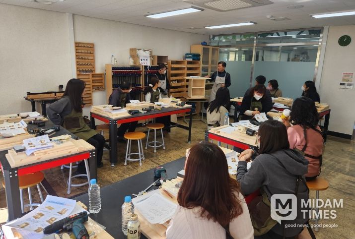 참가 교사들은 전문 강사의 지도 아래 사이드 테이블을 직접 제작하며 도면 해석부터 조립과 마감까지 전 과정을 경험했다. 나무를 깎고 다듬는 과정 속에서 교사들은 성취감과 함께 교육자로서의 초심을 되새기는 시간을 가졌다고 평가했다.