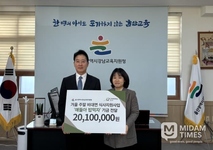 미담타임스 박민정 기자 | 울산 강남교육지원청은 23일 교육장실에서 굿네이버스 울산지부와 함께 ‘얘들아, 밥 먹자’ 사업 전달식을 열었다.