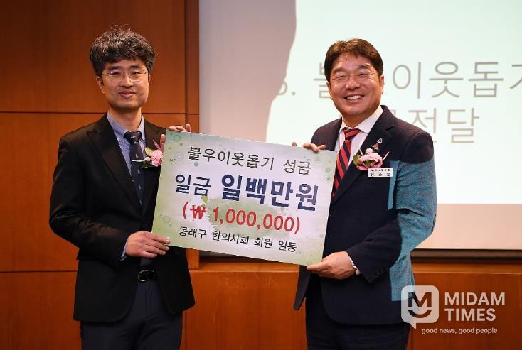 미담타임스 김교환 기자 | 부산 동래구는 지난 21일 동래구 한의사회가 정기총회에서 어려운 이웃을 위한 ‘희망 2026 나눔 캠페인’에 동참하며 이웃돕기 성금 100만 원을 전달했다고 밝혔다.