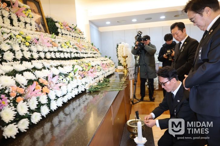 미담타임스 김교환 기자 | 김민석 국무총리가 27일 종로구 서울대학교병원 장례식장에서 故 이해찬 민주평통 수석부의장의 빈소를 조문하고 있다.