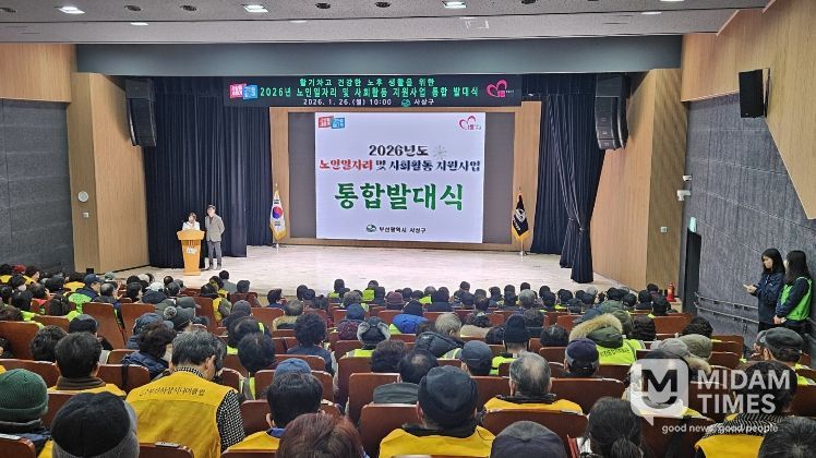 미담타임스 김교환 기자 | 부산 사상구는 지난 26일 사상구청 한마당홀에서 어르신 270여 명이 참석한 가운데 '2026년 노인일자리 및 사회활동지원사업 통합 발대식'을 개최하고 본격적인 사업추진에 들어갔다.