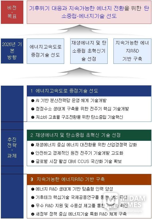 이에 기후에너지환경부는 1월 29일 2026년 에너지기술개발 실행계획과 제1차 에너지기술개발 신규과제 70개(1,369억 원)를 부처 누리집과 한국에너지기술평가원 누리집에 공고한다.