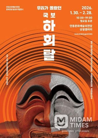 미담타임스 김준완 기자 | 안동문화예술의전당은 신년을 맞아 송강미술관과 공동 주관으로 문화관광 활성화 특별전 '우리가 몰랐던 국보 – 하회탈展'을 1월 30일부터 2월 28일까지 안동문화예술의전당 상설갤러리에서 개최한다.