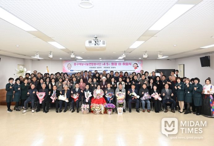 미담타임스 김준완 기자 | (사)울산중구자원봉사센터(이사장 신현석) 소속 중구재능나눔연합봉사단(회장 김영숙)이 지난 1월 29일(목) 오후 6시 중앙동 행정복지센터 3층 민방위교육장에서 제4·5대 회장 이·취임식을 개최했다.