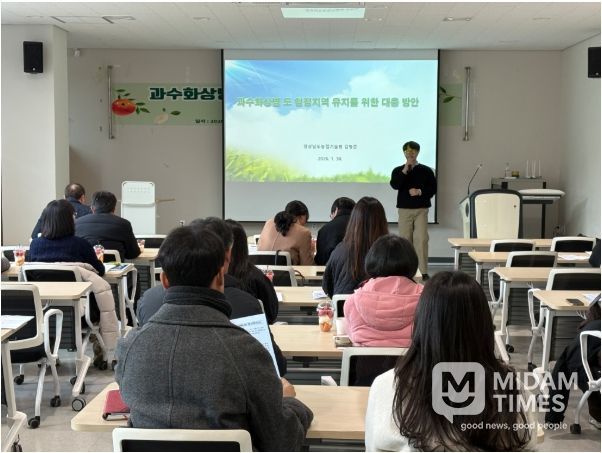 미담타임스 김준완 기자 | 경상남도농업기술원은 과수화상병의 도내 유입을 사전에 차단하기 위해 30일 진주시농업기술센터에서 도내 전 시군 담당자를 대상으로 과수화상병 대응 역량 강화 교육을 실시했다고 밝혔다.