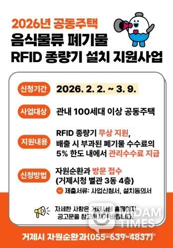 미담타임스 김준완 기자 | 거제시는 지난해에 이어 올해도 공동주택을 대상으로 음식물류 폐기물 RFID 종량기 설치 지원사업을 추진한다고 밝혔다.