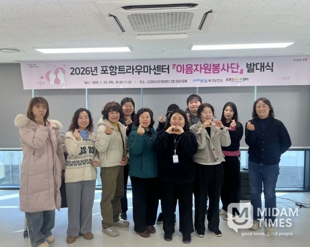 미담타임스 김준완 기자 | 포항시 북구보건소 트라우마센터는 지난달 29일, 지역사회 재난 및 트라우마 회복 활동에 함께할 ‘이음 자원봉사단’ 20명을 대상으로 ‘2026년 이음 자원봉사단 발대식’을 개최했다.