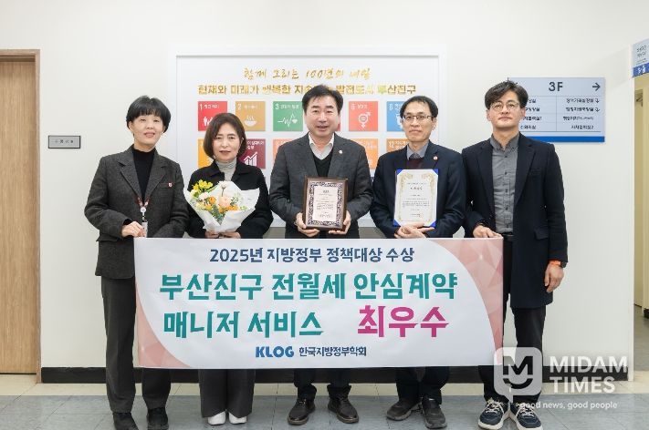 미담타임스 김교환 기자 | 부산진구의 대표적인 주거 복지 정책인‘부산진구 전월세 안심계약 매니저 서비스’가 (사)한국지방정부학회가 주관한 2025년 한국지방정부 정책대상 심사에서 최우수상을 수상하며 구민 체감형 청년친화 정책의 우수성을 다시 한번 인증받는 쾌거를 이뤘다.