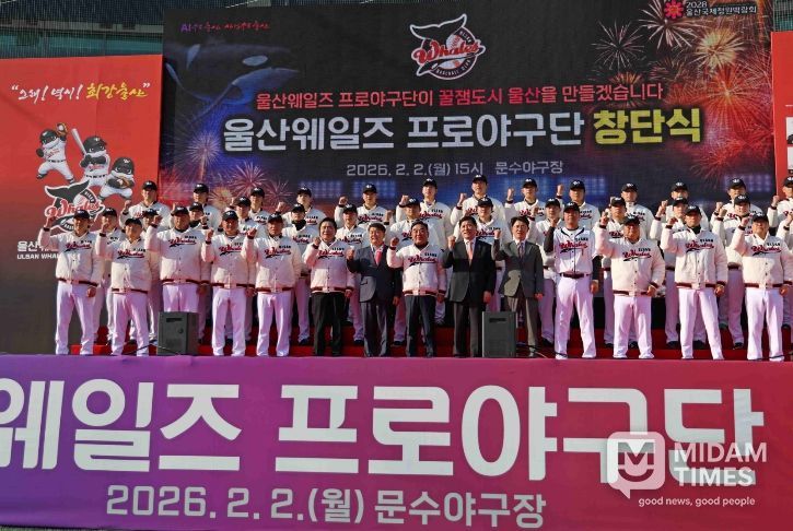 미담타임스 박민정 기자 | 울산광역시(시장 김두겸)는 2월 2일(월) 울산 문수야구장에서 '울산 웨일즈' 공식 창단식을 개최했다.