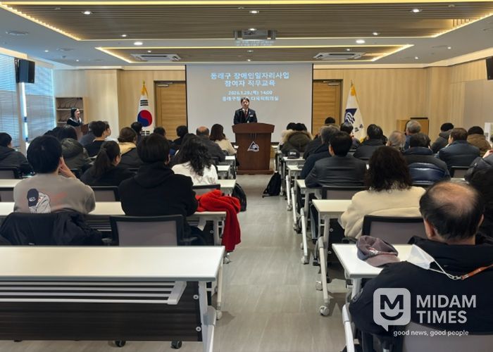 미담타임스 김교환 기자 | 부산 동래구는 지난 1월 29일부터 30일까지 이틀간 구청 다목적회의실에서 장애인일자리사업 참여자 104명을 대상으로‘2026년 장애인일자리사업 참여자 직무교육’을 실시했다고 밝혔다.
