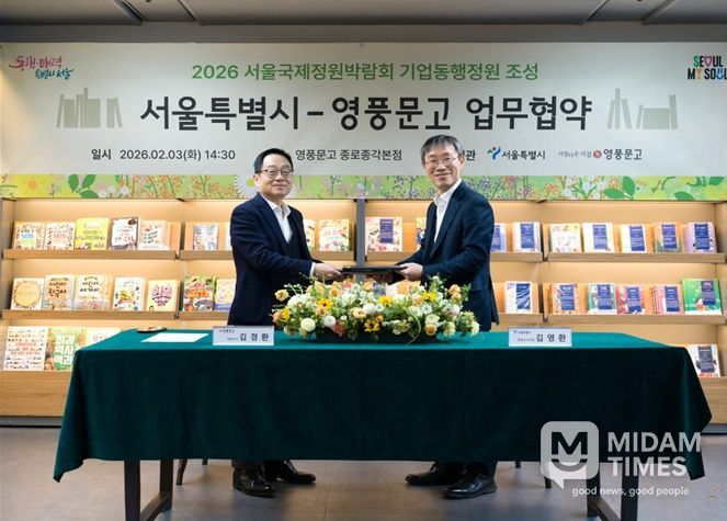 미담타임스 김준완 기자 | 서울시는 2026 서울국제정원박람회 ‘기업동행정원’ 조성을 위해 영풍문고와 업무협약을 체결했다고 밝혔다.