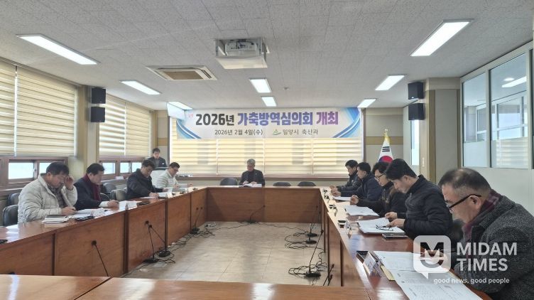 미담타임스 김준완 기자 | 경남 밀양시는 4일 농업기술센터 소회의실에서 ‘2026년도 가축방역심의회’를 개최하고, 가축 질병 없는 ‘청정 밀양’을 지키기 위한 방역 대책을 심의·의결했다.