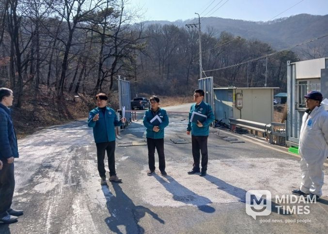 이정곤 부시장은 농장 출입 전 소독을 위해 설치된 통제초소 운영 상황을 확인하고, 농가별 내·외부 울타리와 소독시설 등 방역 체계를 꼼꼼히 점검했다. 4일 오전 2시 30분부터 5일 2시 30분까지 발효된 일시이동중지 명령으로 농장 내부 점검은 제한됐으나, 가능한 모든 분야를 철저히 살피며 농가 관계자들에게 방역 수칙 준수를 강력히 당부했다.