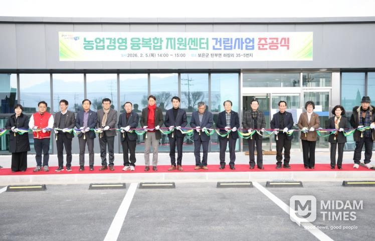 미담타임스 정인화 기자 | 충북 보은군은 5일 탄부면 하장리 일원에서 ‘농업경영 융복합 지원센터 건립사업 준공식’을 개최했다고 밝혔다.