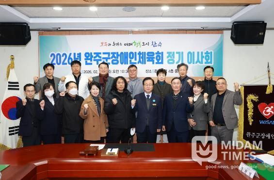 미담타임스 정인화 기자 | 완주군 장애인 체육회가 지난 5일 완주군청 4층 중회의실에서 2026년 완주군 장애인체육회 정기 이사회를 열고, 2025년도 사업결산 및 2026년 사업계획에 대한 승인을 진행했다.