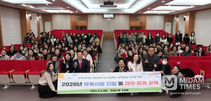 미담타임스 김교환 기자 | 연제구는 지난 2월 3일 연제구청 구민홀에서 관내 어린이집 원장 및 보육교사 120여 명을 대상으로 ‘2026년 보육사업 지침 개정사항 및 재무·회계 교육’을 실시했다.