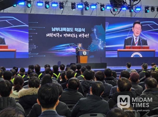 이날 착공식에 참석한 이재명 대통령은 기념사에서 “남부내륙철도는 단순히 선로 하나 놓는 사업이 아니다”라며, “수도권에 모든 것이 집중된 일극체제에서 벗어나 사람과 지역을 잇고 기회를 연결하며 지역의 성장동력을 만들어내는 국토대전환의 시작”이라고 강조했다.