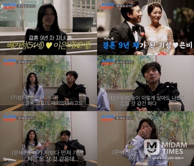 미담타임스 김교환 기자 | TV CHOSUN 극사실주의 다큐 예능 ‘조선의 사랑꾼’에 합류한 '결혼 9년 차' 배기성♥이은비 부부가 서로를 향한 진한 애정으로 감동을 자아낸다.