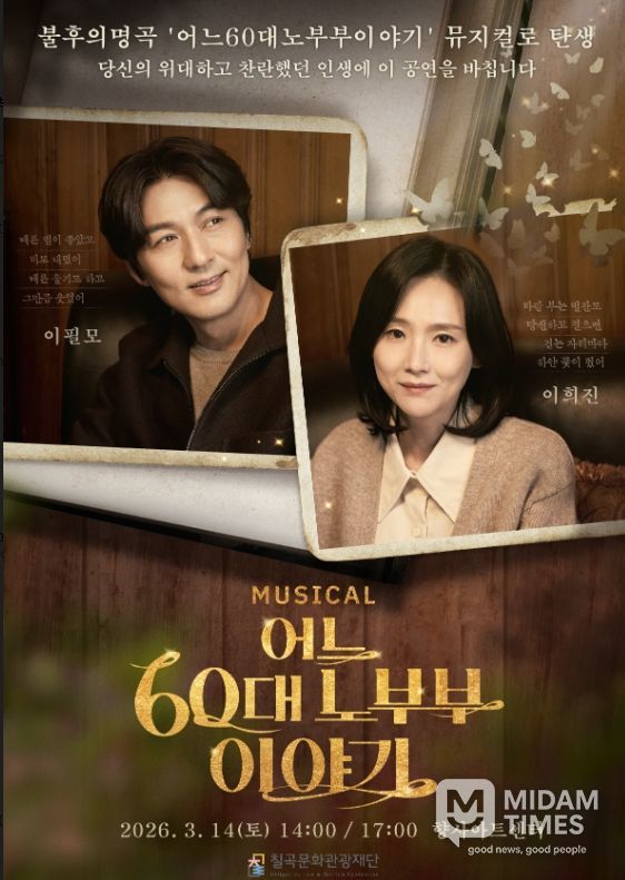 미담타임스 김준완 기자 | (재)칠곡문화관광재단(이사장 김재욱)은 향사아트센터 공연장에서 '어느 60대 노부부 이야기' 뮤지컬 공연을 개최한다.