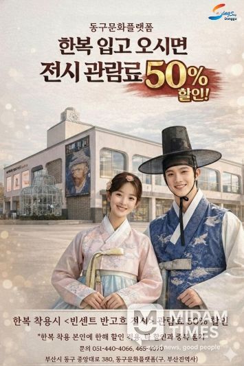 미담타임스 김교환 기자 | 부산 동구는 한복 입기 활성화를 위해 한복을 착용하고 방문한 관람객을 대상으로 동구 문화플랫폼 전시 관람료 할인 이벤트를 진행한다.