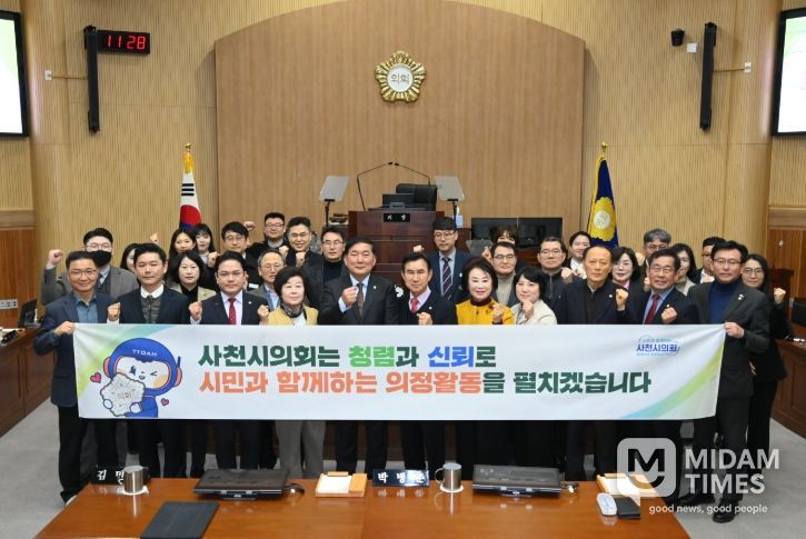 이날 사천시의회 의원들과 직원들은 “사천시의회는 청렴과 신뢰로 시민과 함께하는 의정활동을 펼치겠습니다.”라는 문구가 담긴 청렴 현수막을 들고 청렴 실천 의지를 적극적으로 알렸다.