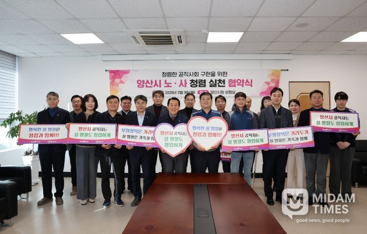 미담타임스 김교환 기자 | 양산시는 공직사회의 부패를 근절하고 청렴한 조직문화를 조성하기 위해 ‘노·사 청렴 협약식’을 9일 시청 상황실에서 개최했다.