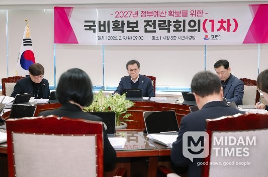 강릉시는 9일 월요일 김홍규 강릉시장 주재로 '제1차 국비확보 전략회의'를 실시하여, 핵심사업 완성을 위한 국비확보 총력추진을 위해 2027년 목표액을 지난해 4,771억 원에서 329억 원 증액된 5,100억 원으로 하고,