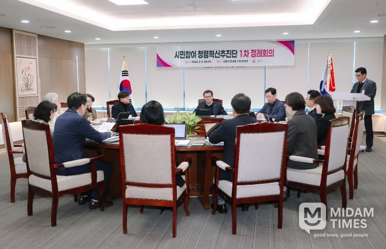 미담타임스 정인화 기자 | 강릉시는 9일 본청 8층 시민사랑방에서 김홍규 시장 주재로'시민참여 청렴혁신추진단'제1차 정례회의를 개최하고, ‘공정과 신뢰의 청렴 제일 강릉’실현을 위한 2026년 반부패 청렴시책 추진계획 공유 및 부패취약분야의 개선대책 등을 논의했다.