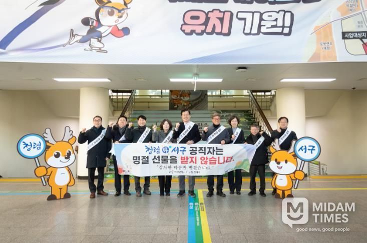 미담타임스 정주환 기자 | 인천광역시 서구는 설 명절을 맞아 공직사회 전반에 청렴 문화를 확산하기 위해 ‘청렴주의보’를 발령하고, 지난 9일 구청 로비에서 출근길 직원들을 대상으로 ‘설 명절 청렴캠페인’을 실시했다.